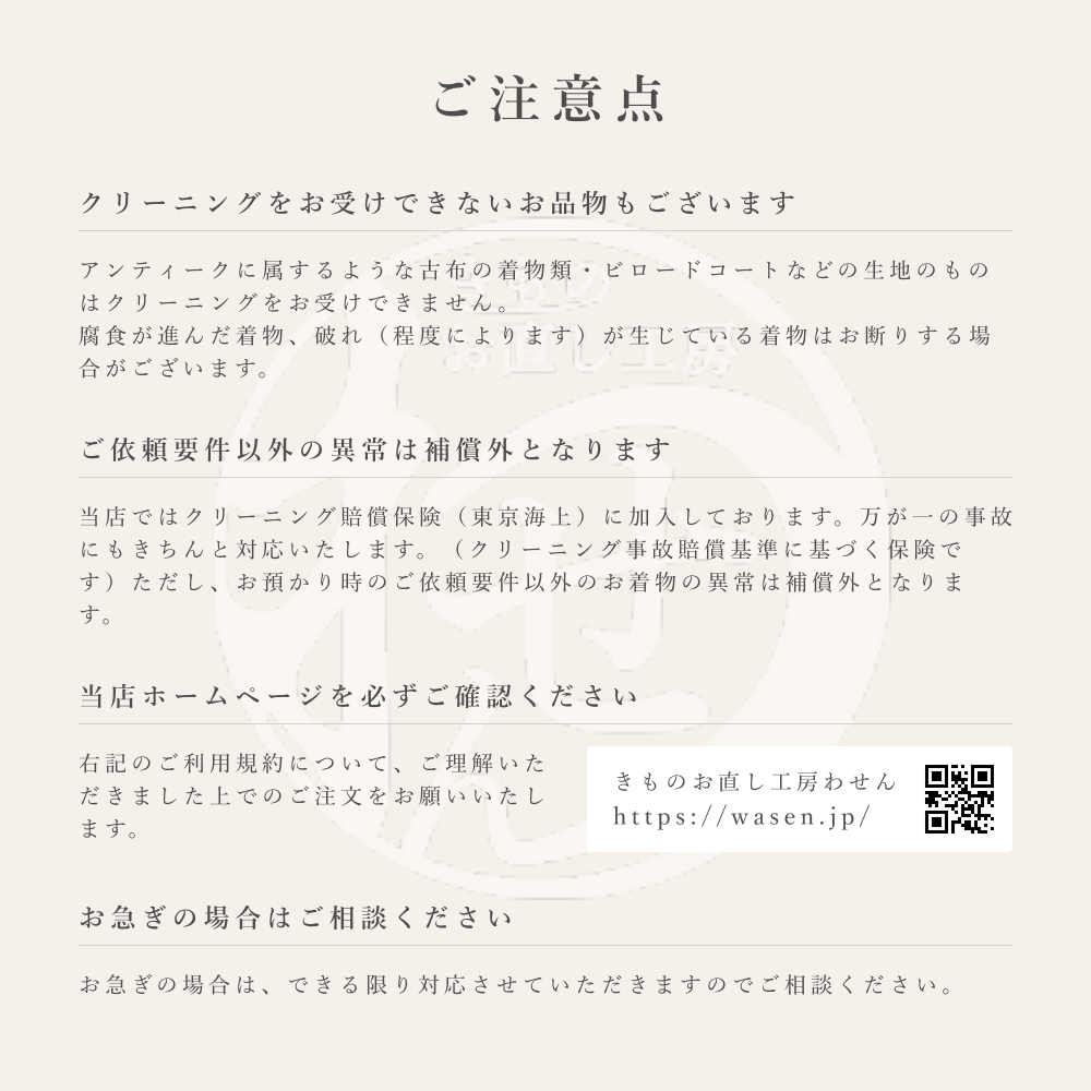 - 比翼付留袖・振袖・袴専用丸洗い/特価